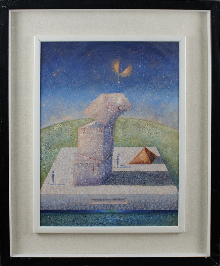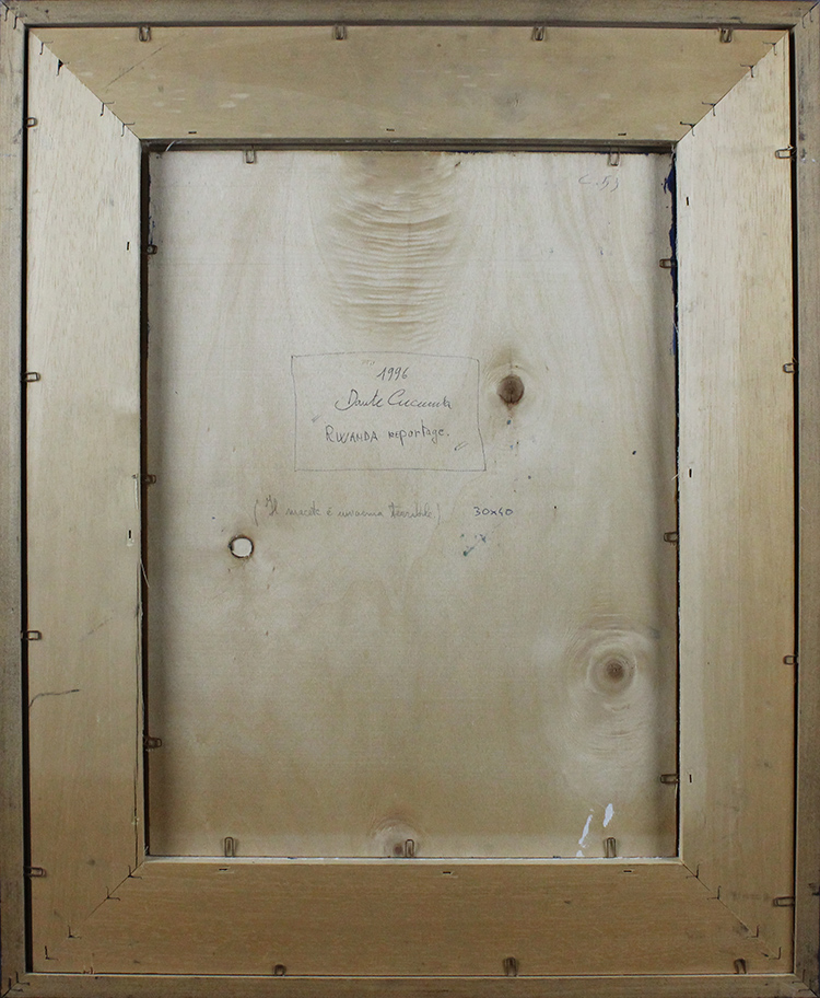 DANTE CUCURNIA, "Rwanda reportage", 1996, Olio su tavola, Dim. 40x30, Al verso: data, titolo e firma, Al fronte: firmato in basso al centro, Opera con cornice