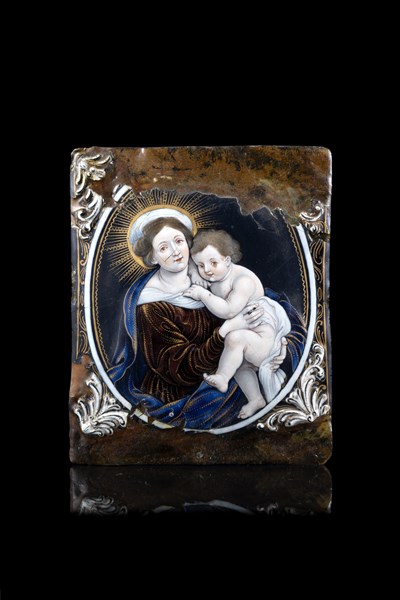 Jacques Laudun II (1663-1729) "Madonna con Bambino" placca in smalti montata su