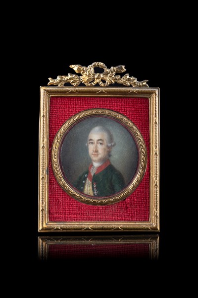 Domenico Garbi (Perugia, ?) "Portrait of a Knight of the Order of Saint Stephen of Hungary" miniature on ivory (d. cm 5,5) signed along the edge, on the left: "Garbi f."