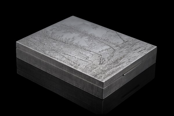 Mario Buccellati Scatola portasigarette in argento con coperchio inciso con scor