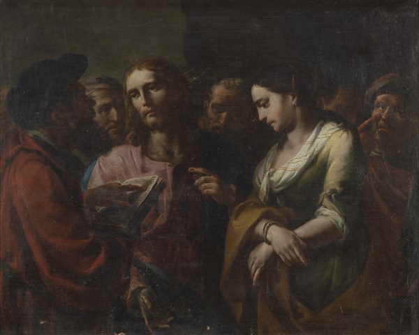 Scuola napoletana del secolo XVIII Cristo e l'adultera Olio su tela, cm 113,5x