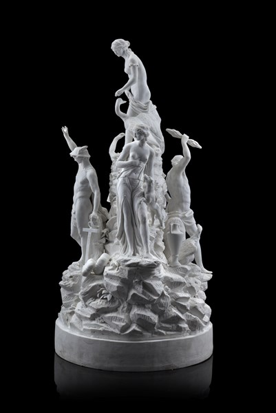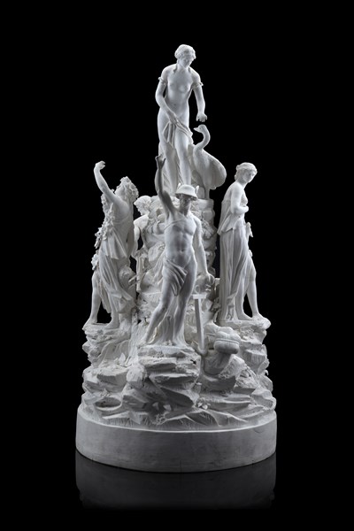 Manifattura di Locrè, Parigi, fine del secolo XVIII "Trionfo di Leda" gruppo in
