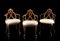 Gruppo di tre rare poltroncine in noce con gambe e braccioli mossi e schienale