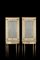 Coppia di console a mezzaluna con piani in marmo e specchiera in legno intaglia
