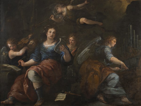 Giuseppe Nuvolone Santa Cecilia con angeli musicanti Olio su tela, cm 194x259,5
