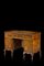 Scrivania da centro lastronata in radica di noce e radica d'ulivo, filettata in