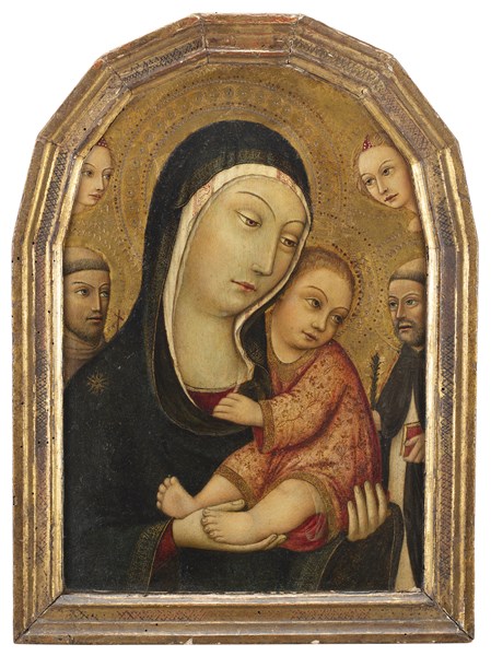 Sano di Pietro Madonna con Bambino, santi e angeli Tempera e oro su tavola, cm 5