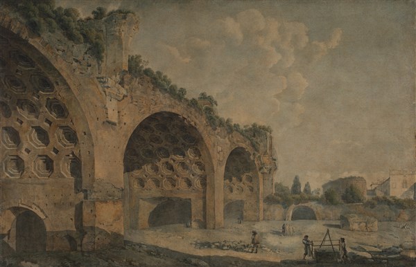 Del soggetto, derivato da una celebre stampa di Piranesi, esistono una versione eseguita con le stesse tecniche al museo Cantonale de Beaux Arts di Losanna, e un'altra versione incisa da Volpato, e colorata da Ducros, al British Museum di Londra