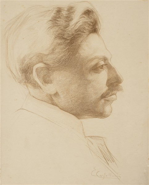Castellucci Ezio (Castiglion Fiorentino 1849-?) Ritratto virile sanguigna e ma