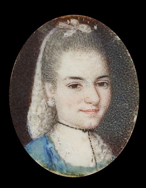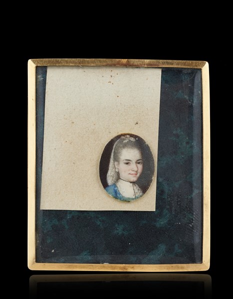Maestro del secolo XIX "Ritratto di gentiluomo" miniatura in avorio (cm 4x7) montata a ciondolo in oro. Al retro piccola miniatura raffigurante gentildonna (cm 1,4x1,9)