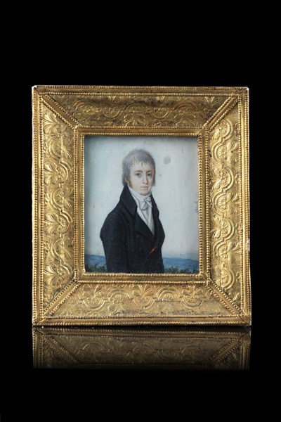 Bicoli "Gentleman with powdered hair" miniature on ivory (6x5.5 cm) signed at right Bicoli, in gilded frame