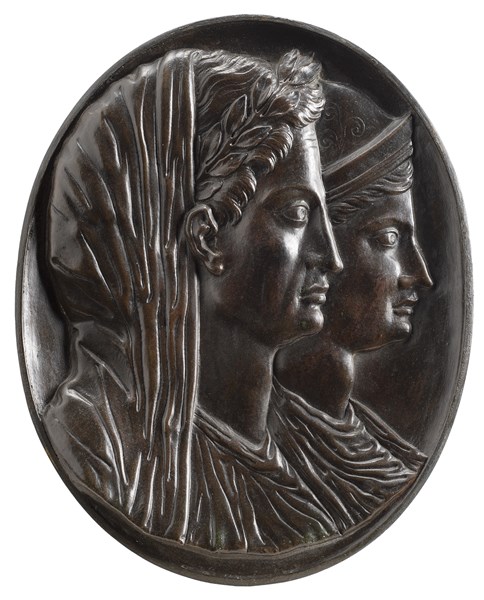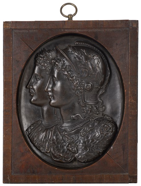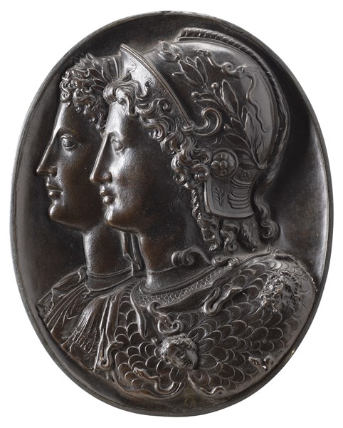 Coppia di rilievi in rame raffiguranti cammei dall’antico. Roma, fine secolo XV