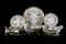 Minghetti manufactory, Bologna. Part of a monogrammed tableware comprising twelve saucers, a centerpiece, two saucepans and a flower vase (defects and restoration)