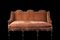 Divano a tre posti in noce intagliato a foglie e fiori con schienale, braccioli