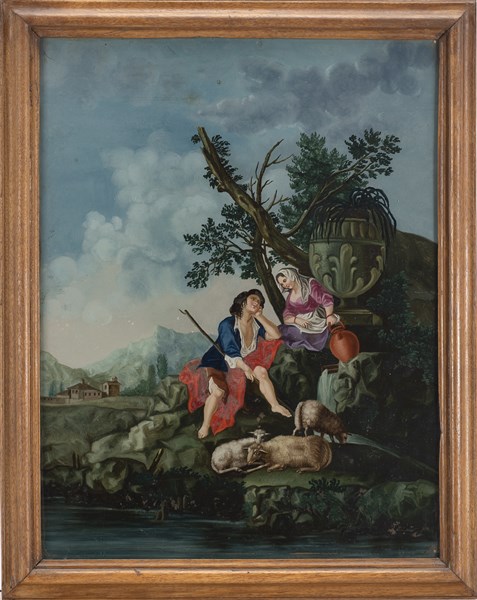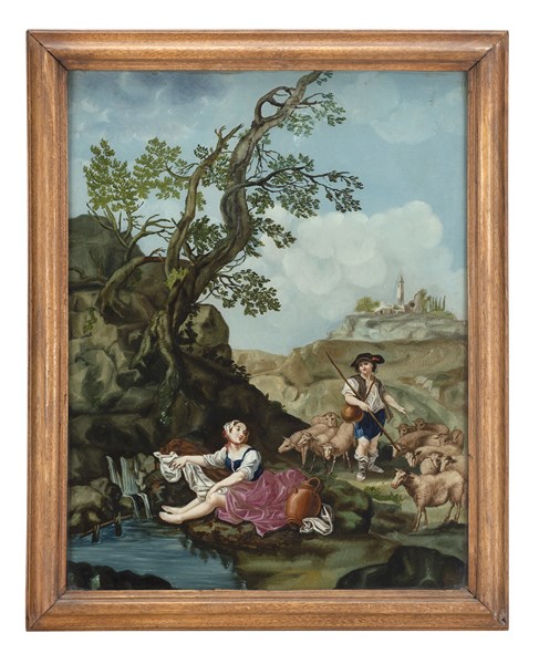 Lot 251 | Scuola del secolo XVIII "Scene agresti" gruppo di tre verre-peint (cm 45x35) In