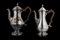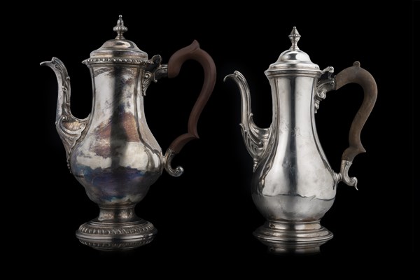 Lotto composto da due caffettiere in argento liscio con anse in legno sagomato e presa a trottola. Punzoni inglesi (h. max cm 29) (g. 1700 lordi) (difetti)