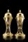 Coppia di candelieri in bronzo a forma di vasi con prese a pigna. Montanti term