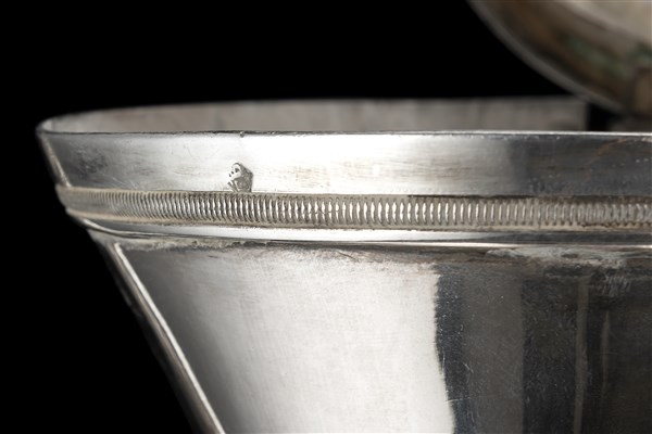 Silver coffe pot with ebonized wooden handle. Genoa, first half of the 19th century. F.B silversmith (h. cm 38) (g gross 1900) (minor defects)