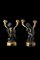 Coppia di candelieri a due fiamme in bronzo brunito e dorato a foggia di putti