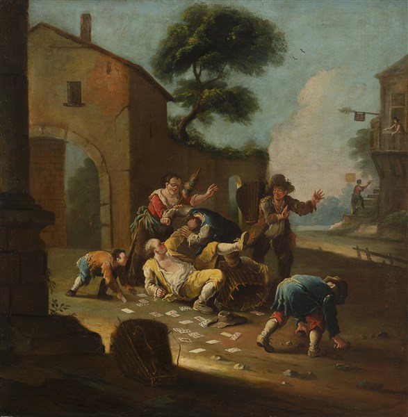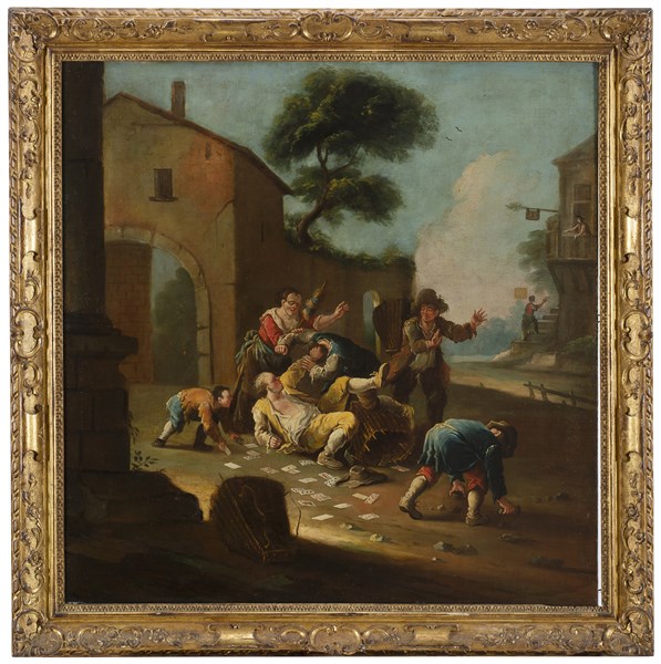 Scuola piemontese della fine del secolo XVII Rissa tra giocatori di carte Olio