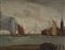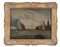 Scuola del secolo XIX "Paesaggio con barche" verre-peint (cm 36x47) In cornice in legno argentato a guantiera (lievi difetti)