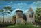 School of the 19th century "Fortifications in landscapes" pair of verre-peints (cm 20x30) In lacquered and gilded wooden frames (minor defects)