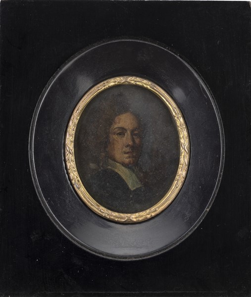 Scuola del secolo XVIII "Ritratto di gentiluomo" miniatura ovale su rame (cm 6x5,5) In cornice (difetti)