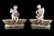 Manifattura di Meissen. Coppia di saliere in porcellana a forma di conchiglia decorate all'interno in policromia a fiori e foglie. Sormontate da amorini che reggono macinino e pentolino, poggianti su basi a rocaille (cm 16x18x8,5) (difetti)