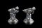 Coppia di saliere in argento a forma di tritone a tutto tondo che sorregge valva di conchiglia. Titolo 800, argentiere Luigi Avolio (h. cm 9) (g 530)