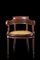 Poltrona a pozzetto in mogano filettata in metallo dorato con seduta incannucci
