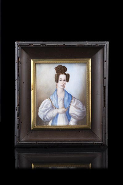 Maestro del secolo XIX "Ritratto di gentildonna con scialle azzurro" miniatura