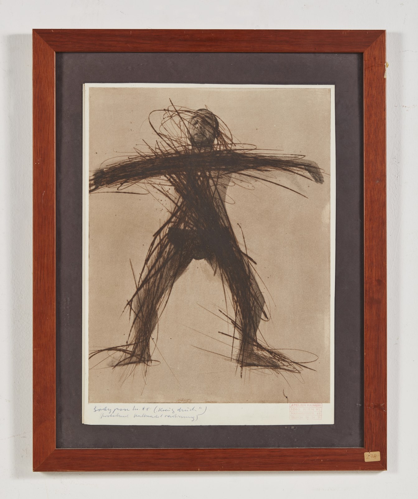 RAINER ARNULF (n. 1929) Body pose. 1988. Puntasecca. Cm 31,00 x 40,00. Prova di stampa. Titolo, tiratura, anno e tecnica in basso a sinistra. Timbro Atelier Rainer in basso a destra e al retro. Scritta indecifrabile al retro. Provenienza: Studio Oggetto, Caserta. Lievi difetti. . Cornice presente