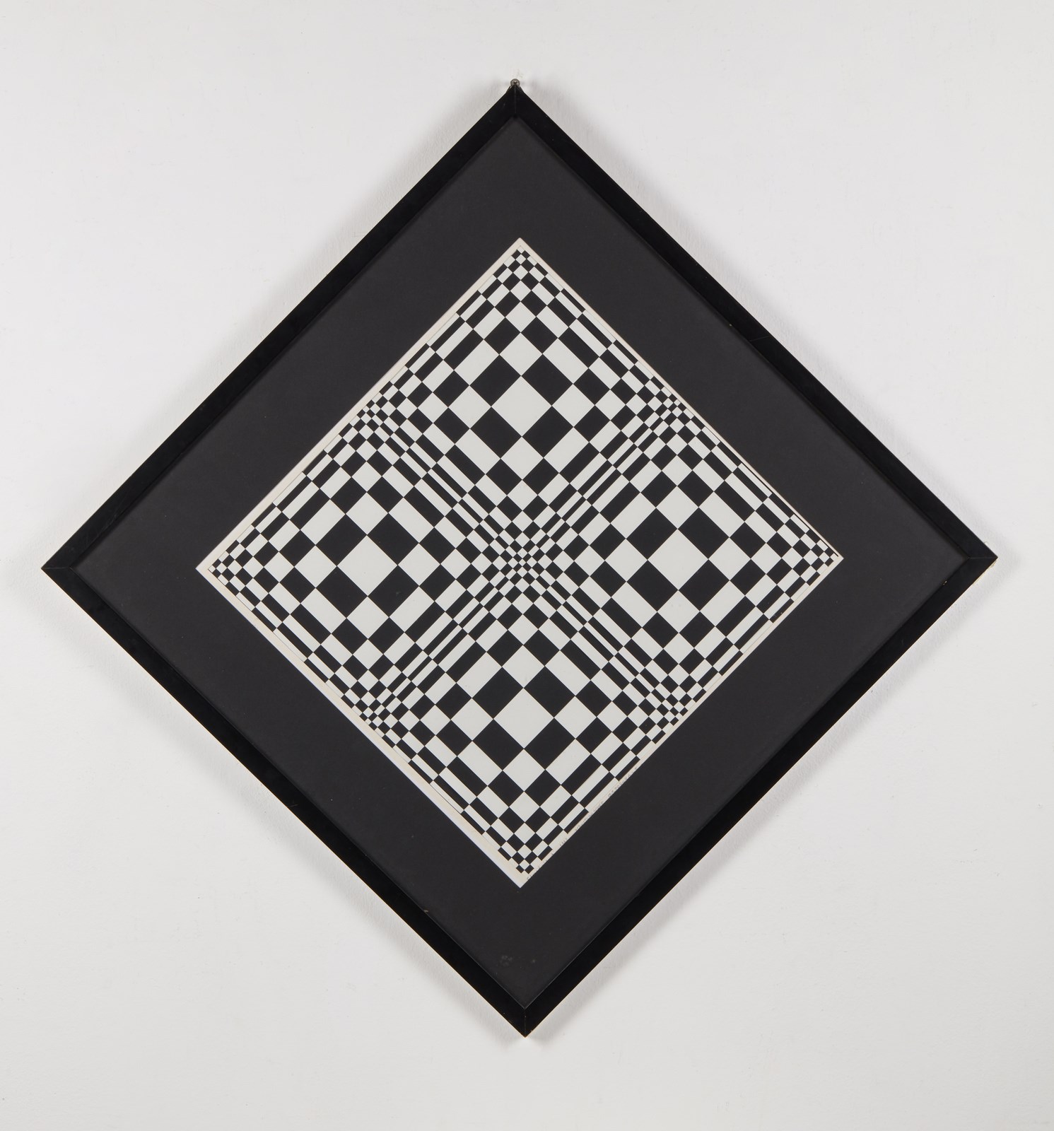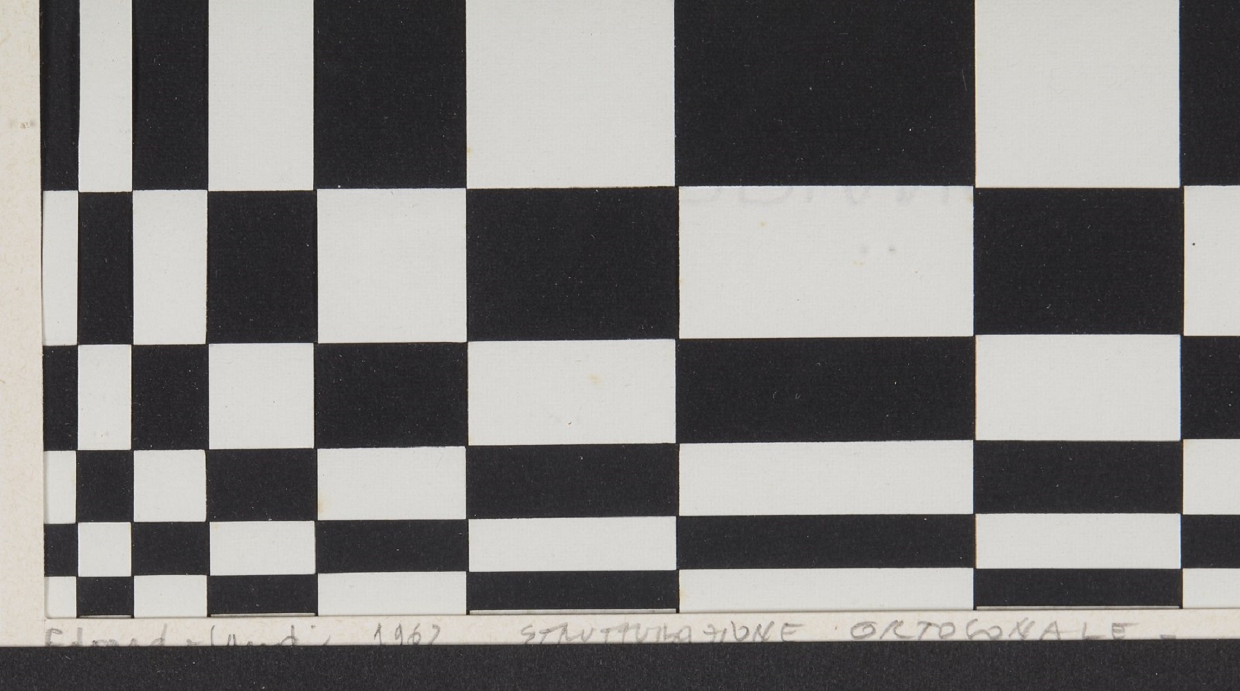 LANDI EDOARDO (n. 1937) Strutturazione ortogonale B.N. 1962. Cartoncino. Cm 56,50 x 56,50. Firma, anno e titolo in basso a sinistra. Autentica dell'artista su fotografia. Lievi difetti. . Cornice presente