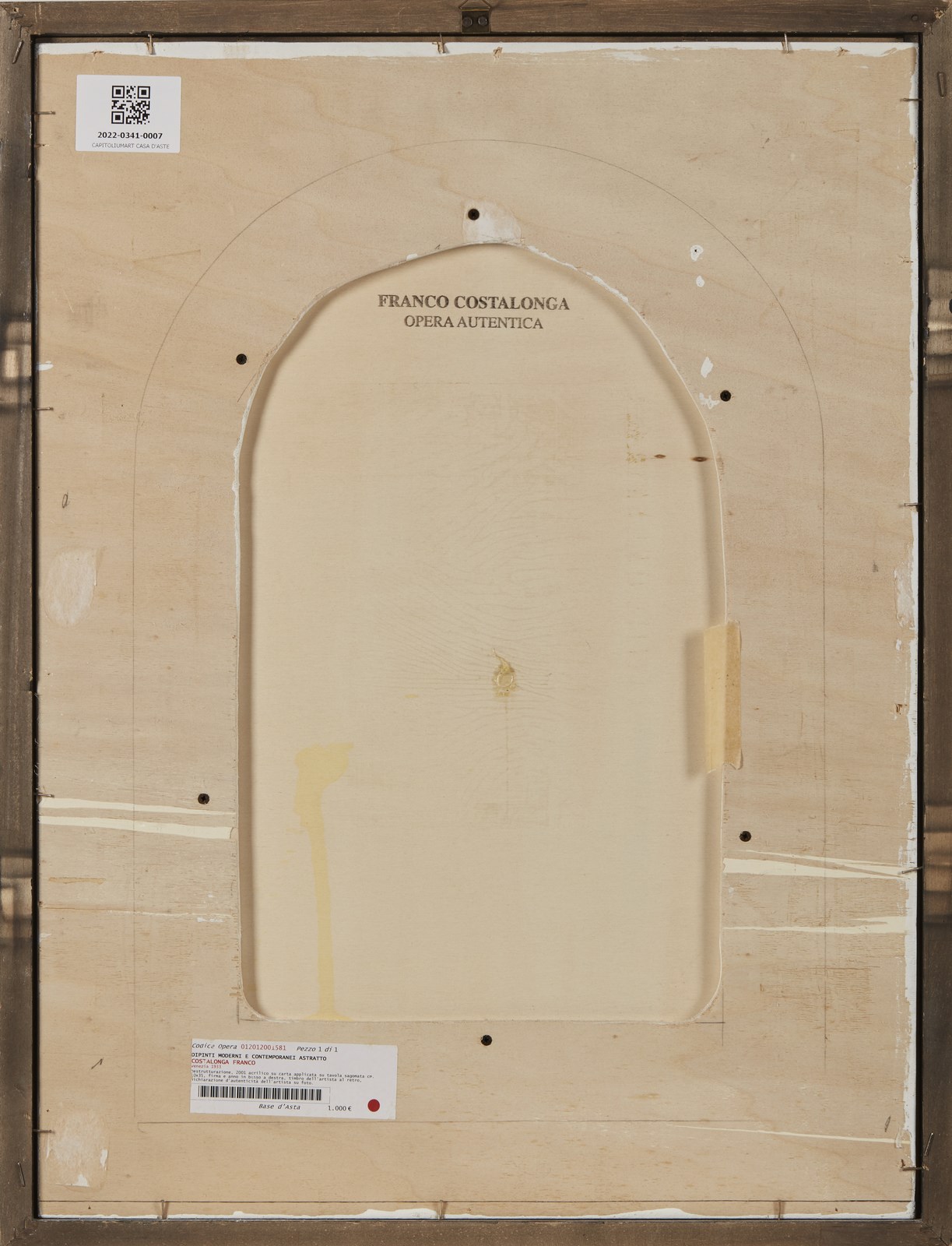 COSTALONGA FRANCO (n. 1933) Destrutturazione. 2001. Acrilico su carta incollata su tavola. Cm 35,00 x 50,00. Firma e anno in basso a destra. Timbro dell'artista al retro. Autentica dell'artista su fotografia. Lievi difetti. . Cornice presente