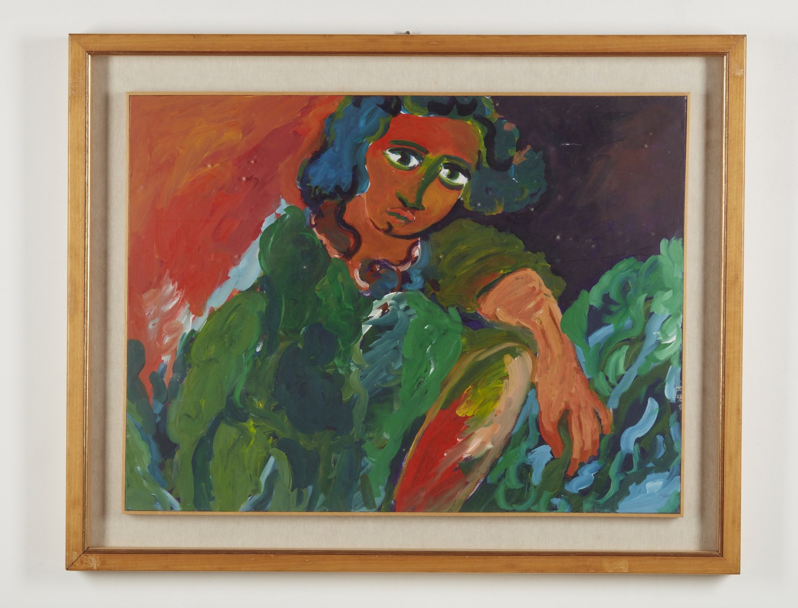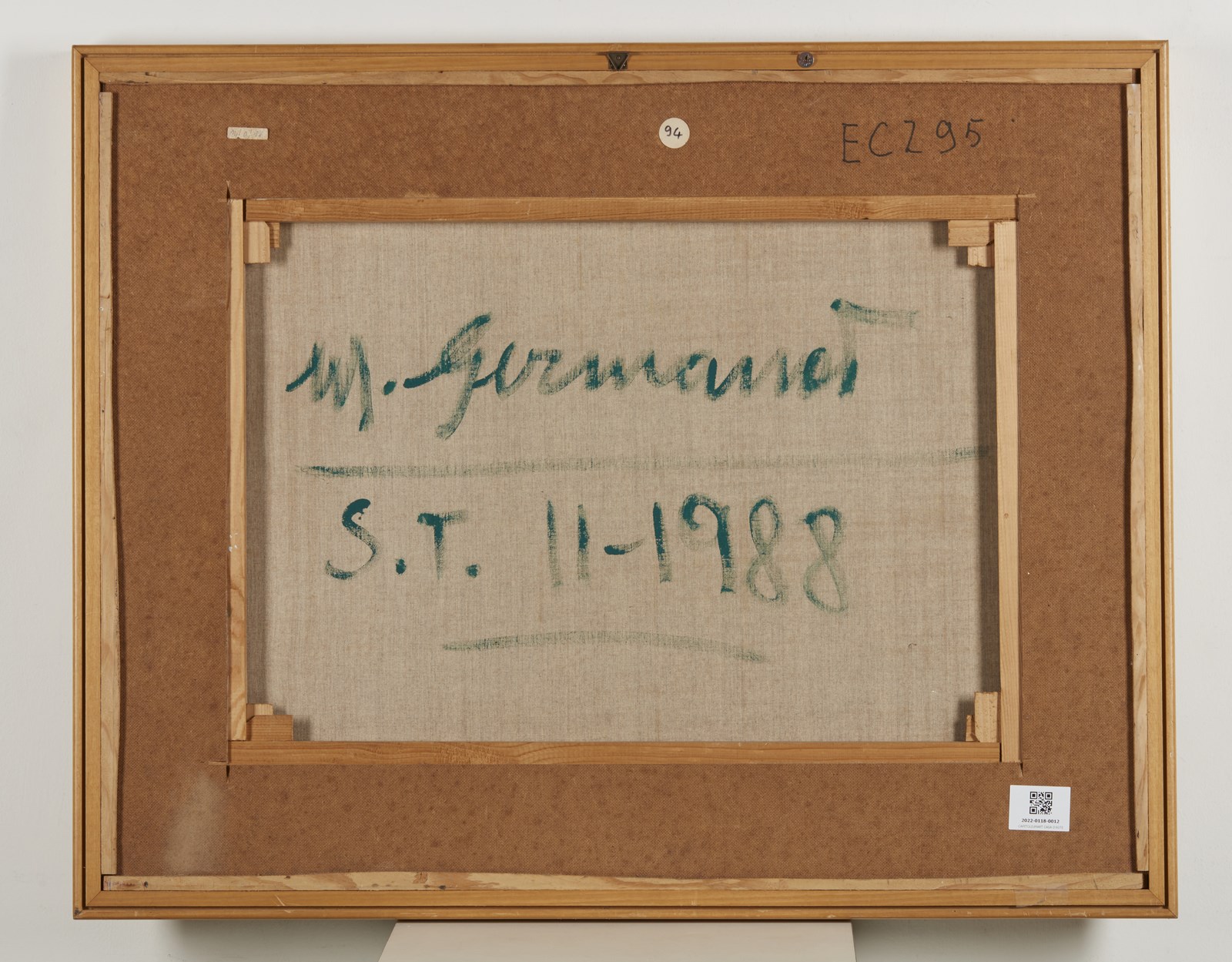 GERMANA' MIMMO (1944 - 1992) Senza titolo. 1988. Olio su tela . Cm 80,00 x 60,00. Al retro firma e anno. Provenienza: Collezione Franchini, Genova; Collezione Privata, Genova. Lievi difetti. Cornice presente