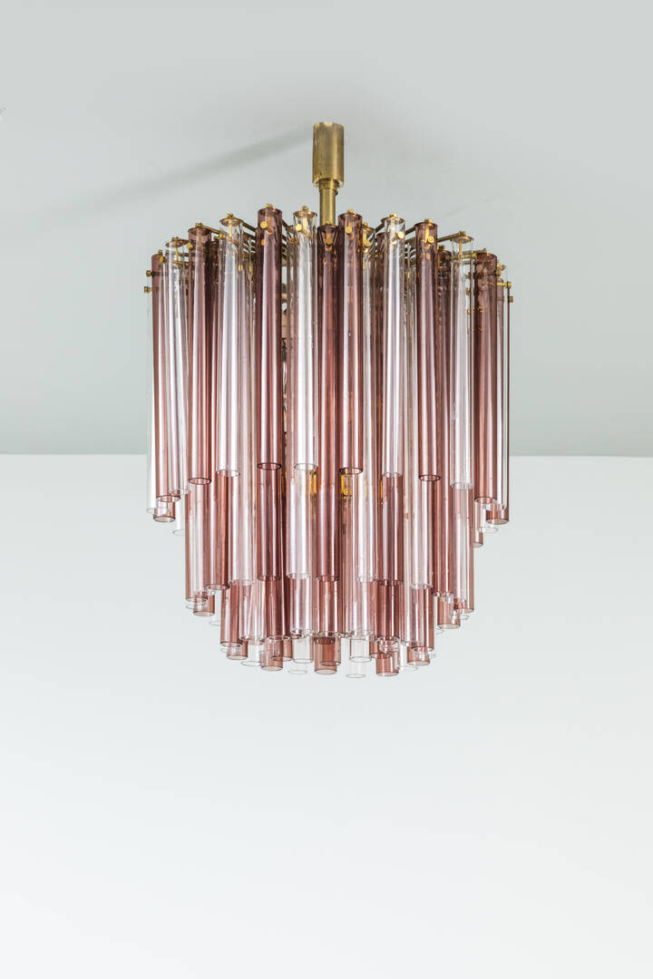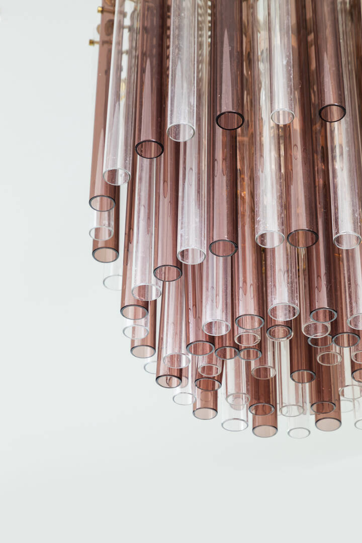 Lampadario con elementi pendenti in vetro colorato, tige in ottone