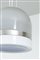 Lampada a sospensione costituita da tre elementi in vetro opalino e lattimo. Tige con tre cavi telati di sospensione. Anello in metallo cromato.