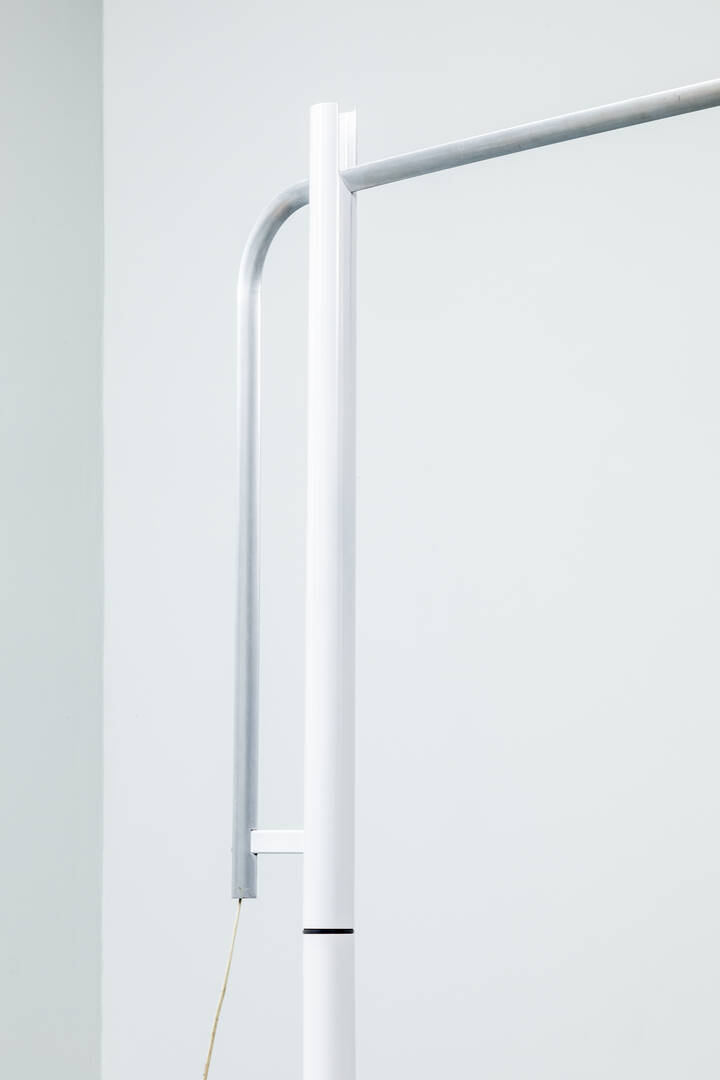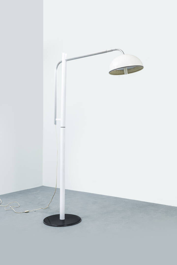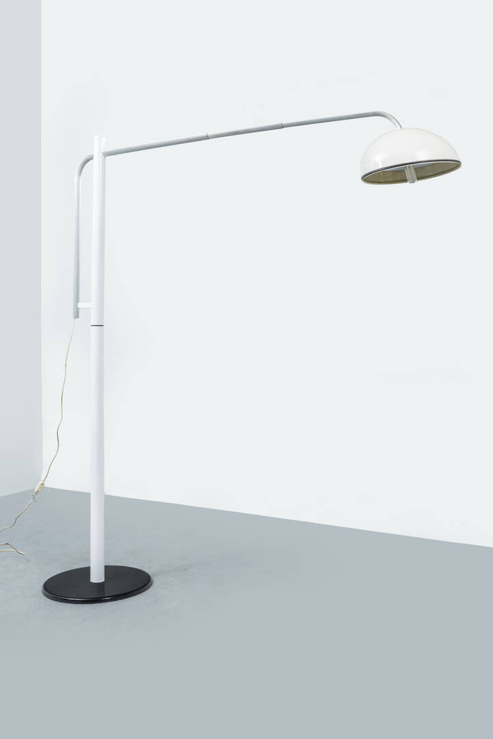 Lampada da terra con braccio estensibile in acciaio e metallo verniciato.