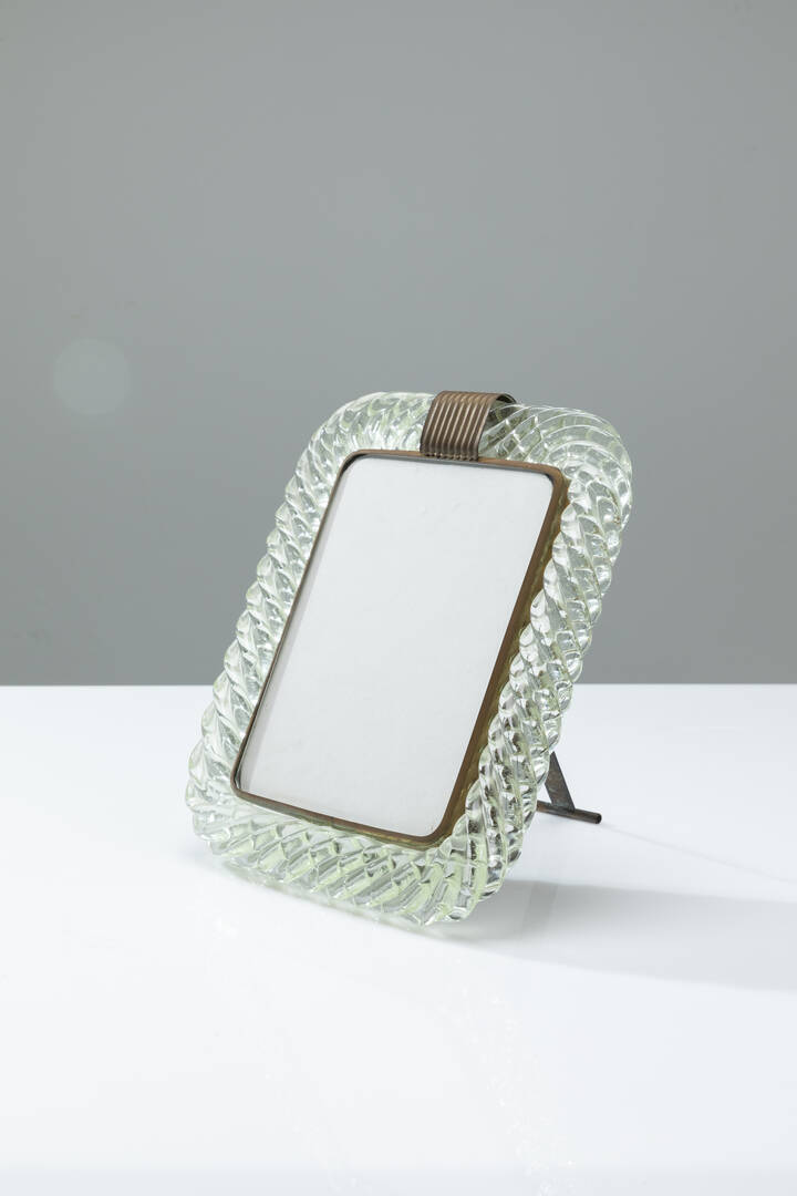 Portafoto in vetro lavorato a torchon, montatura in bronzo.