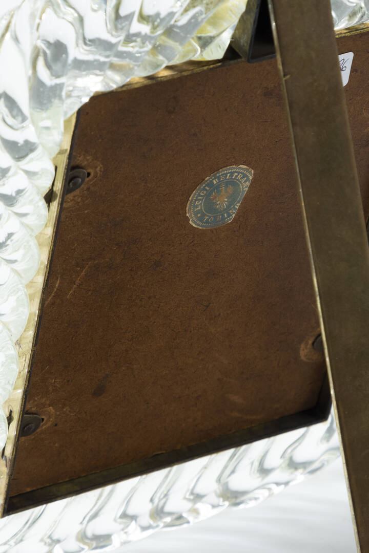 Portafoto in vetro lavorato a torchon, montatura in bronzo.