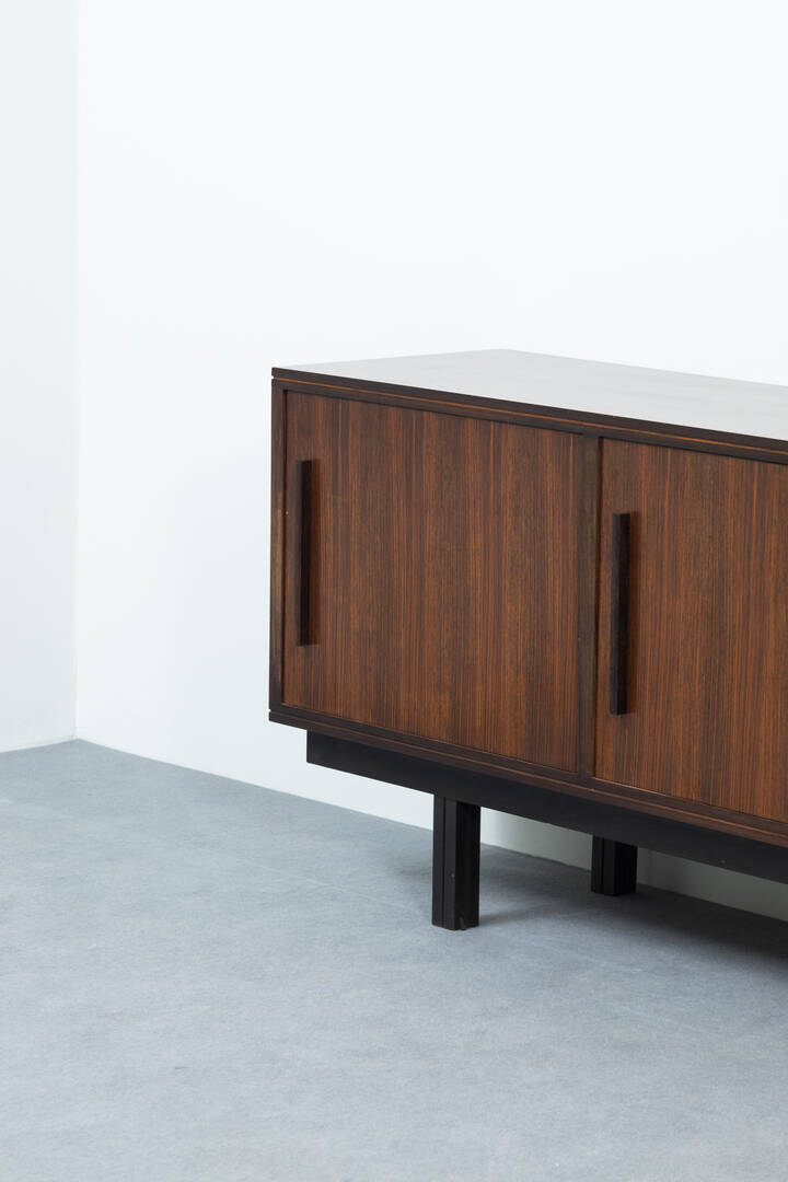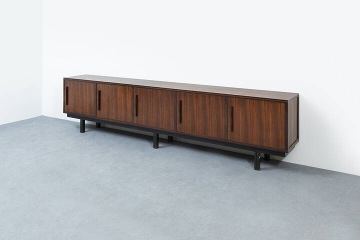 Grande sideboard con struttura in legno e antine impiallacciate, sostegni in legno.