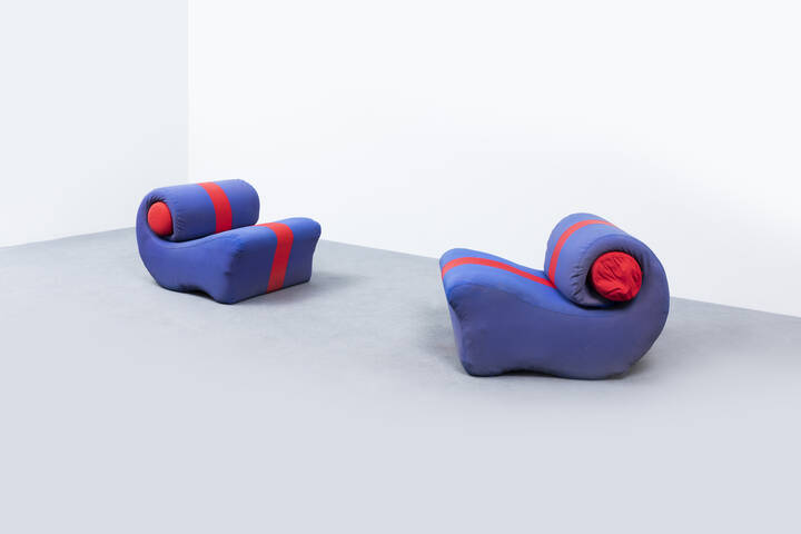 Seduta in poliuretano rivestita in tessuto elasticizzato.