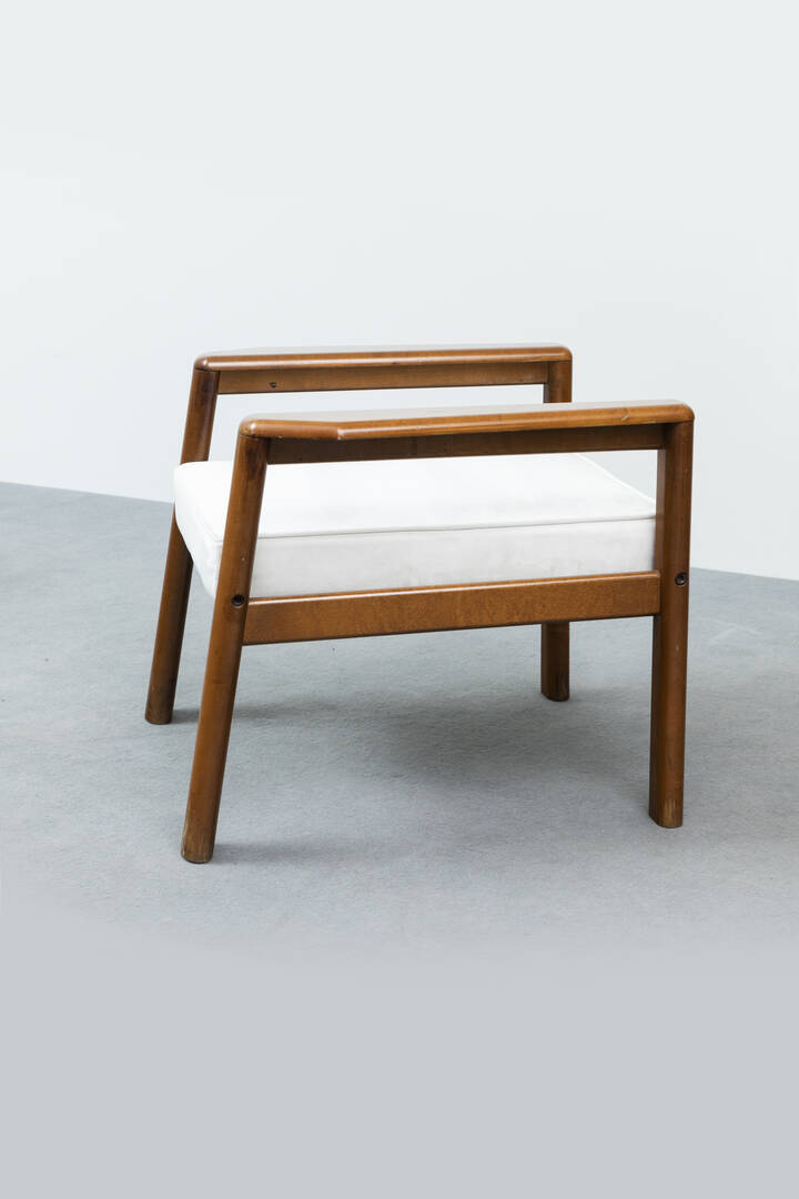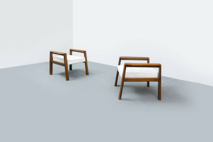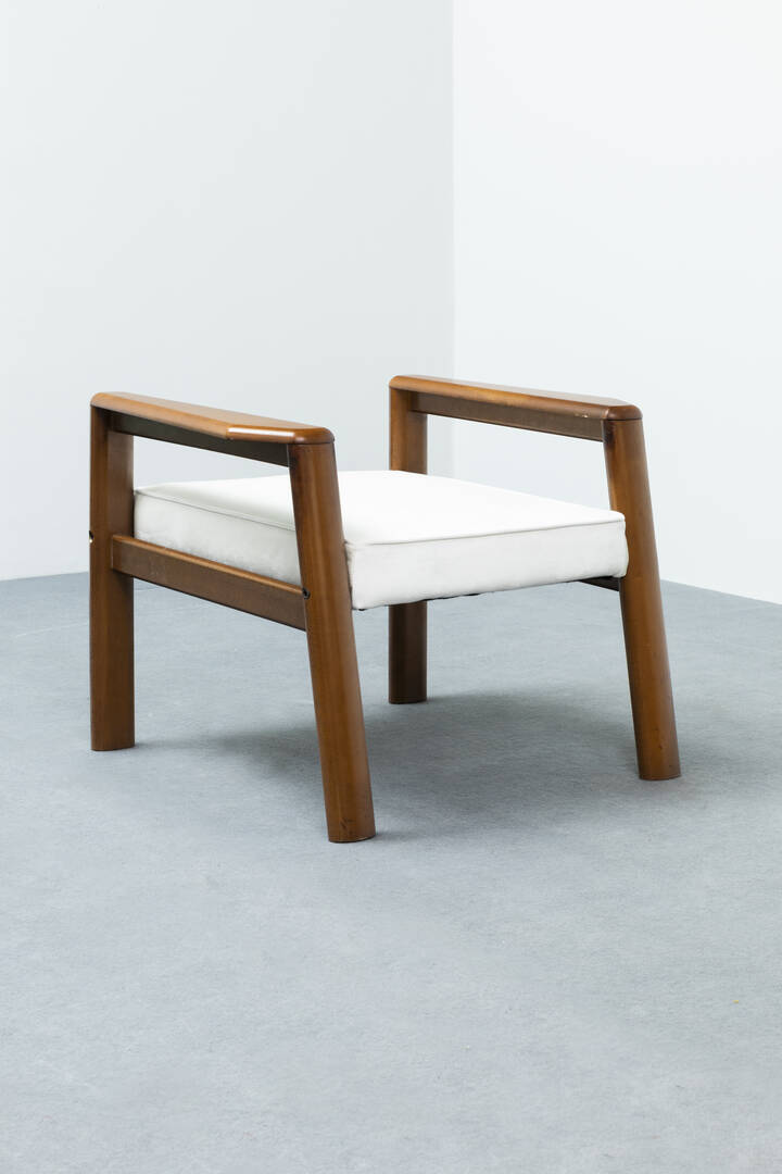 Coppia di sgabelli con struttura in legno, imbottitura rivestita in velluto.