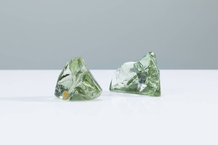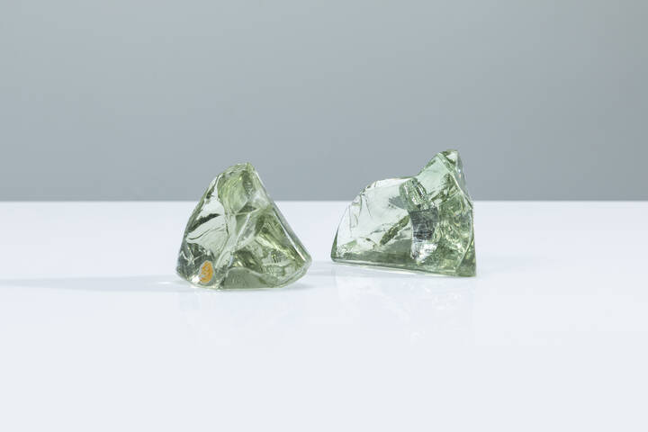 Due fermacarte in cristallo sagomato e molato.
