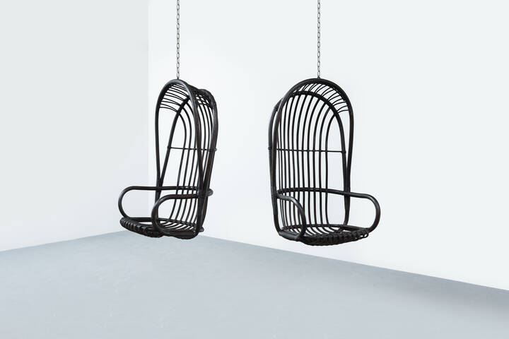 Coppia di dondoli in bamboo e canna d'India verniciati.