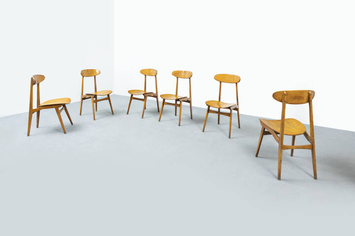 Previous Lot 516 Next Sant’Agostino - Corso Tassoni 56, 10144 Torino 202 Design Seconda tornata Thursday 14 April 2022 hours 16:00 (UTC +01:00) PRODUZIONE SCANDINAVA PRODUZIONE SCANDINAVASei sedie in legno chiaro.Anni '50cm 85x42,5x47