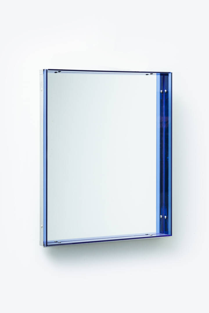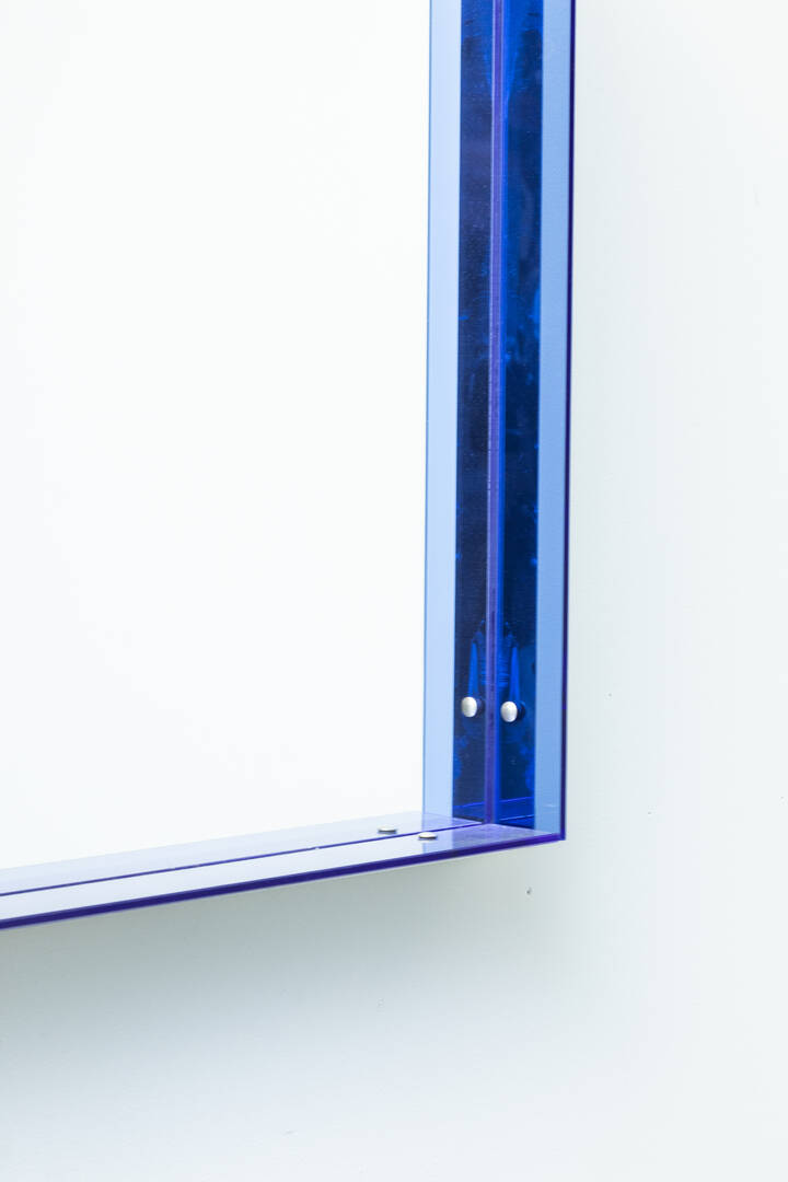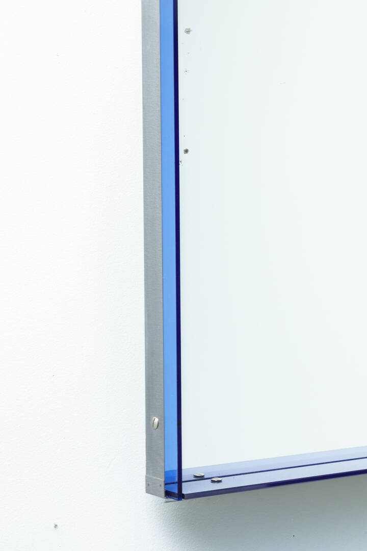 Specchio con bordo in cristallo colorato, struttura in metallo.