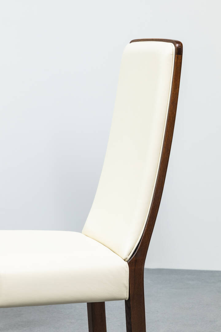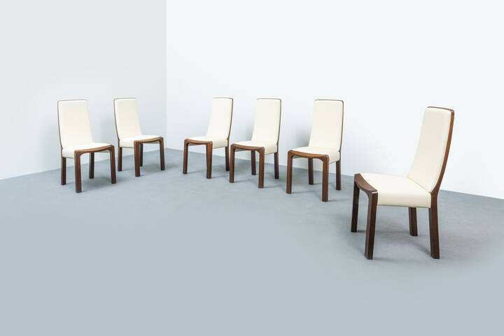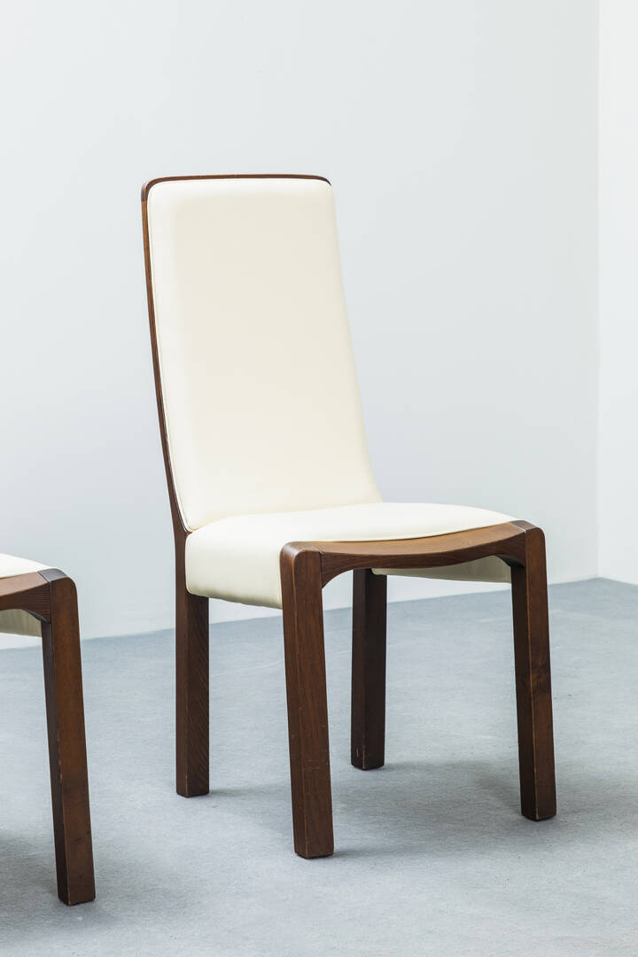 Sei sedie con struttura in legno massello, sedute imbottitite rivestite in pelle.