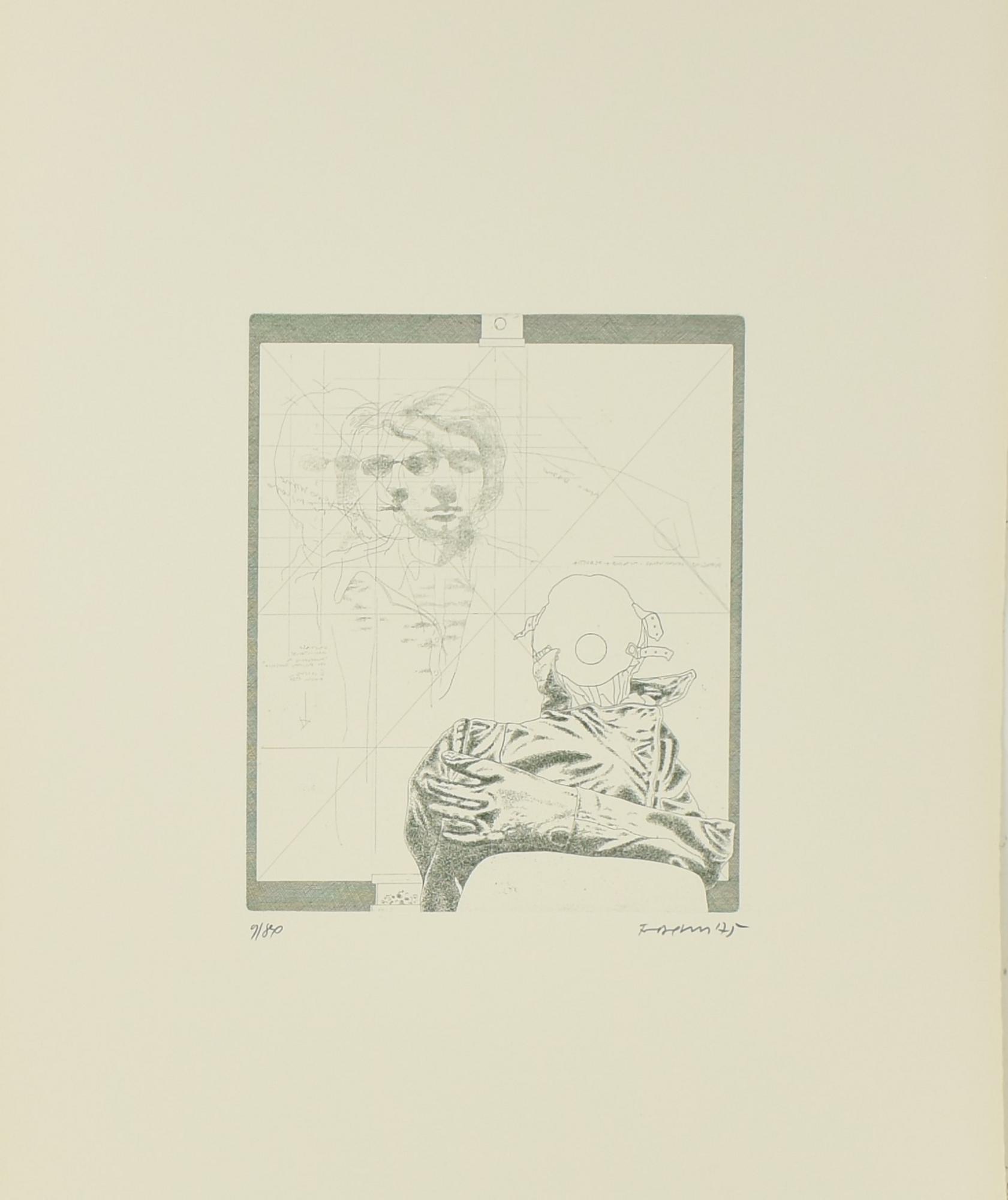 Marco Fidolini CARTELLA 5 ACQUEFORTI 'IL PITTORE E L'INTRUSO INQUETANTE;...
