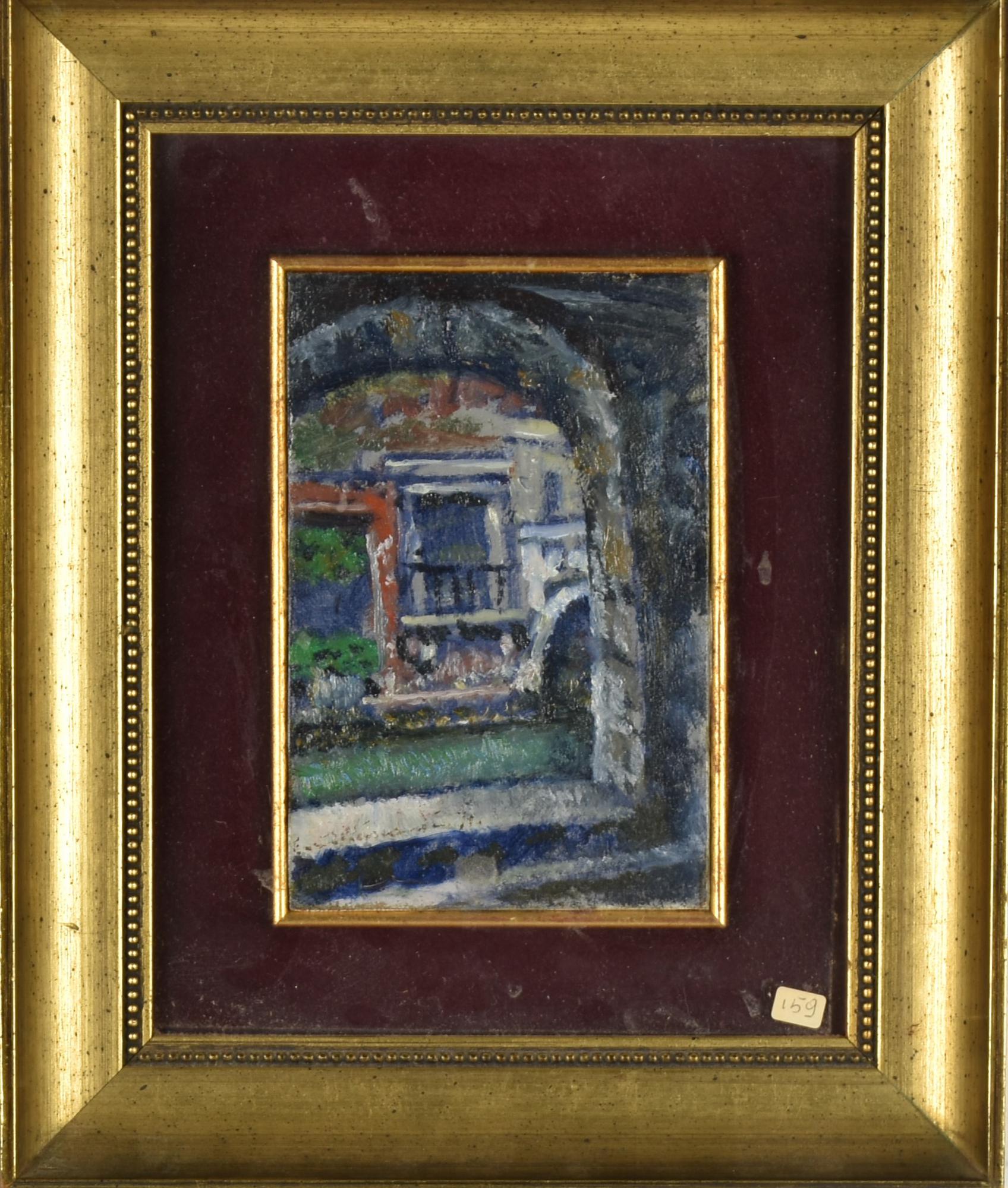Lot 104 | Enrico Allimandi CASA CON BALCONCINO olio su cartone, cm 15x10 firma eseguito...